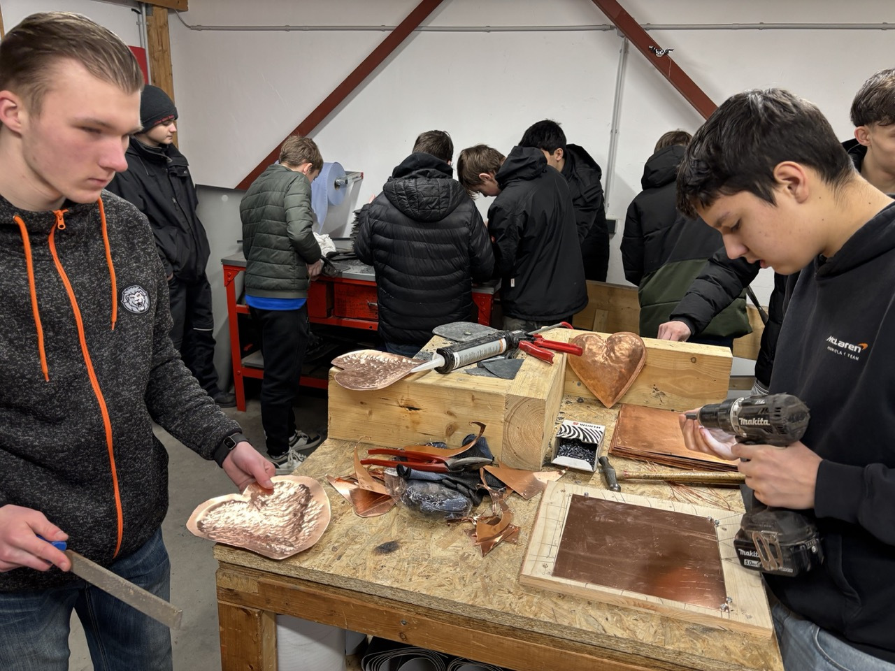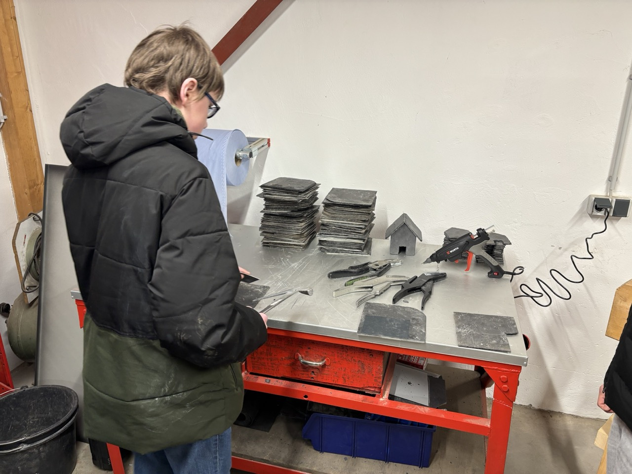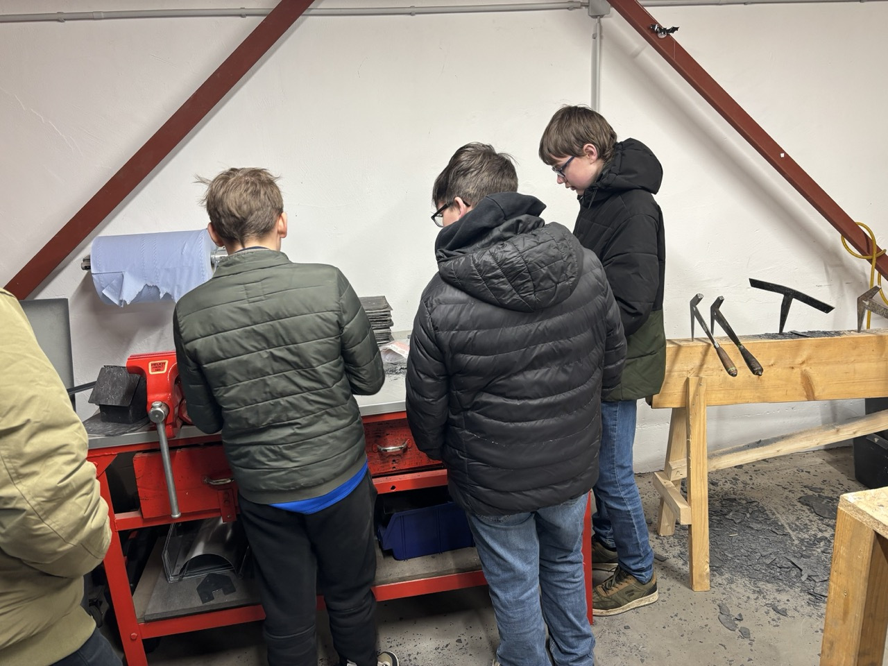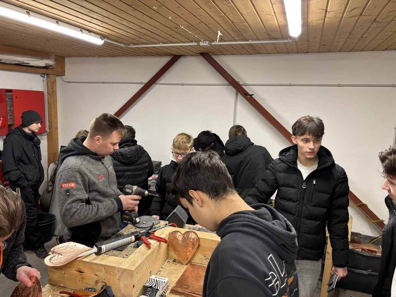 Im Anschluss folgte ein Rundgang durch das Lager des Betriebs. An verschiedenen Stationen konnten die Schülerinnen selbst aktiv werden und praktische Übungen ausprobieren. Mit großer Begeisterung und viel Engagement nutzten sie die Gelegenheit, typische Tätigkeiten des Dachdeckerhandwerks kennenzulernen und sich praktisch zu erproben.