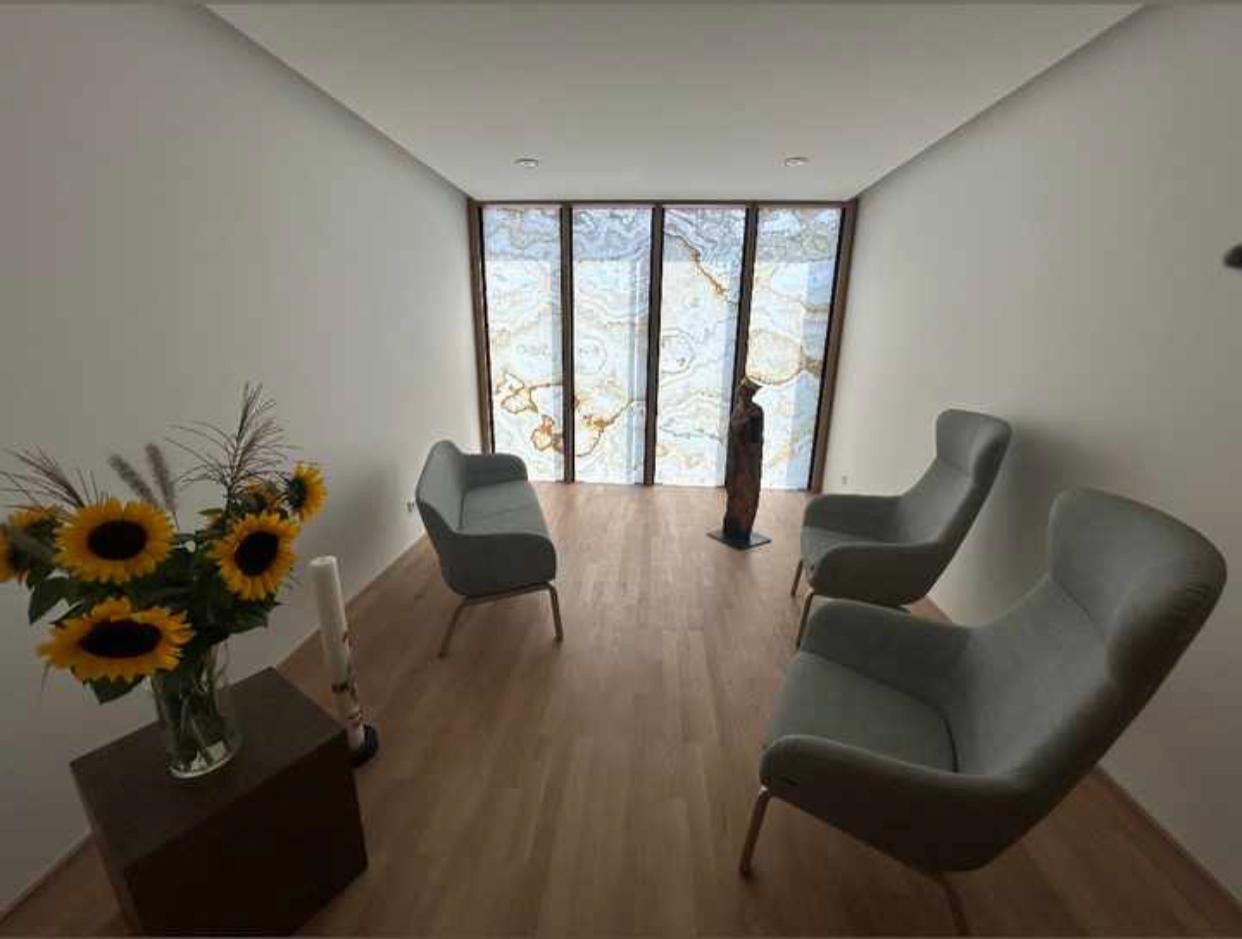 Zahlreiche Fragen, die wir zuvor im Unterricht gesammelt und aufgeschrieben hatten, konnten von den drei anwesenden Personen, die im Hospiz ehrenamtlich tätig sind, beantwortet werden. Um eine bessere Vorstellung zur Aufteilung und Einrichtung eines Gästezimmers im Hospiz zu erhalten, wurden uns ein paar Fotos gezeigt, die ausführlich erläutert wurden. Mit diesem Besuch wurde uns in vertrauter Atmosphäre ein Stück Angst vor dem Sterben, dem Tod und der Trauer genommen. Die Botschaft, dass das Leben und der Tod untrennbar zusammengehören und ein würdevolles Leben bis zum Schluss möglich ist, ist ein schöner Gedanke, den wir gerne in den Alltag mitnehmen.